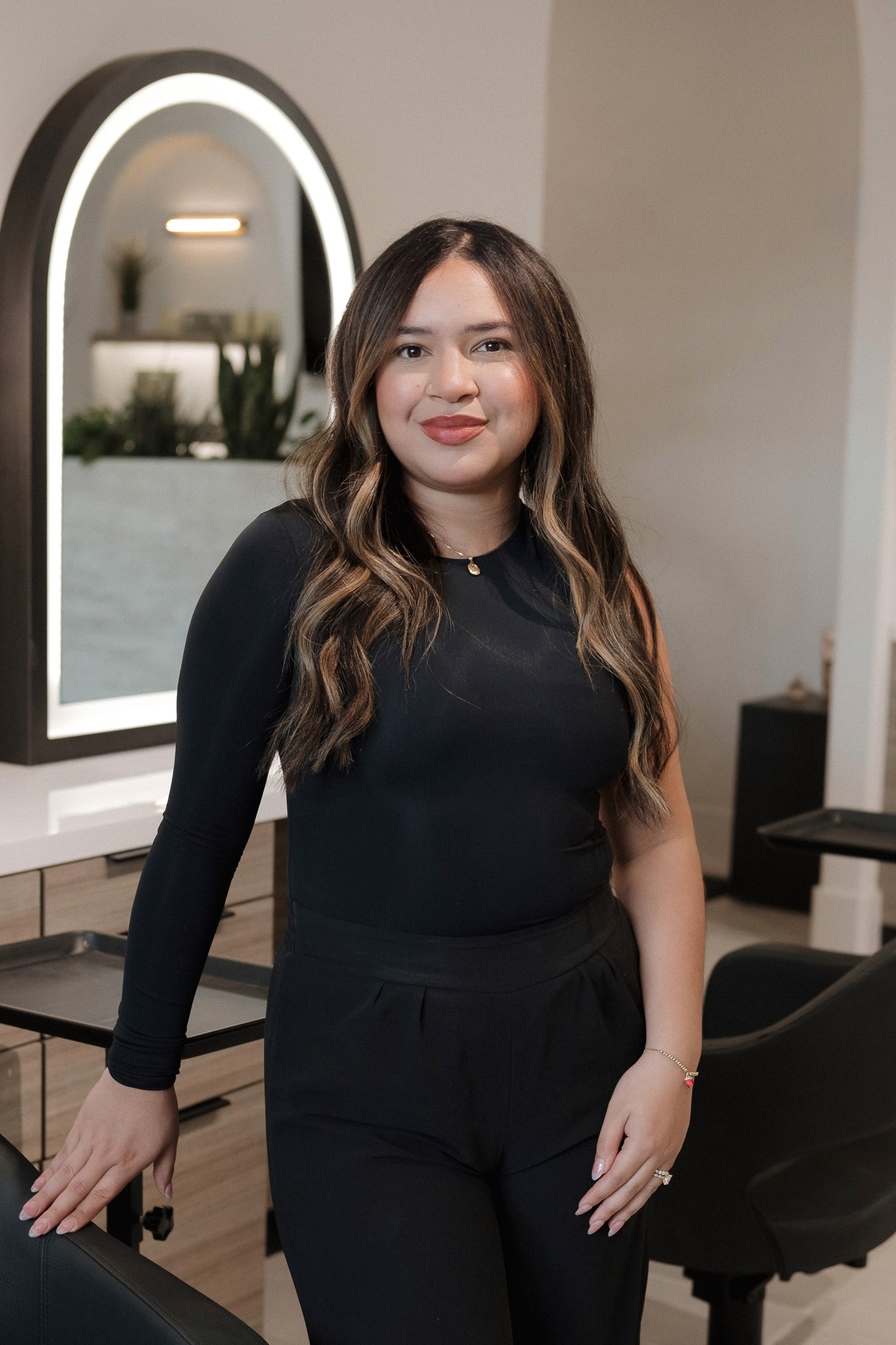Rocio is a proud mom of three and a valued part of our Guest Happiness Team, making sure every client experience flows seamlessly from the moment you walk in. She’s been with us for four years and truly loves what she does — especially the people. For her, it’s all about helping guests feel happy and beautiful and being surrounded by a team she genuinely loves. She’s a big country music fan (but also our resident Swiftie when it comes to Taylor Swift), makes an amazing espresso martini, and has a full house at home with four dogs and cats plus four fish. Rocio brings warmth, fun energy, and a whole lot of heart to the salon every single day.
