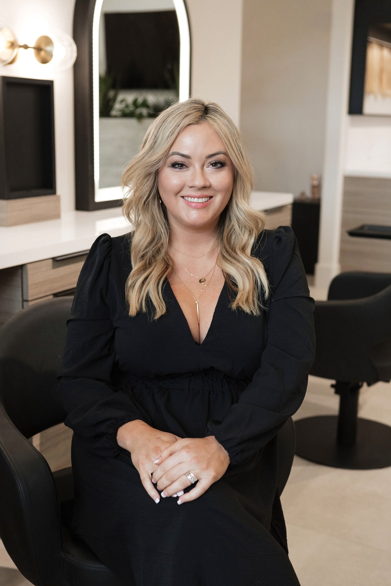 Megan is the heart behind the day-to-day as our Salon Manager. A proud mom of two, she balances leadership and family life with so much grace (and a little cheetah print flair). She loves traveling with her family and creating memories outside the salon just as much as she loves keeping everything running smoothly inside it. Megan leads with care, organization, and a big-picture mindset — always making sure the team feels supported and the guest experience stays top tier.